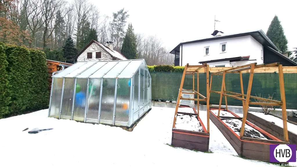 Pečlivě udržovaná zahrada poskytuje dostatek prostoru pro příjemné posezení. Na pozemku je kůlna a parkovací místo pro dvě auta.
