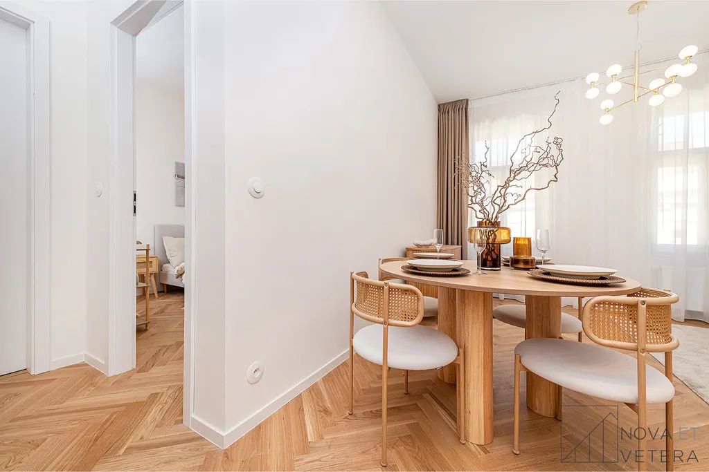 Vysoký standard kompletní rekonstrukce zahrnuje nové rozvody elektřiny, vody a odpadů. Dále rekonstrukce zahrnuje dřevěné parketové podlahy, kvalitní velkoformátové obklady a dlažbu od italského dodavatele MARAZZI. V koupelně a na toaletě naleznete sanitu značky GROHE. Moderní kuchyňská linka disponuje mimo jiné kvalitními spotřebiči značky BOSCH a zapuštěným granitovým dřezem.