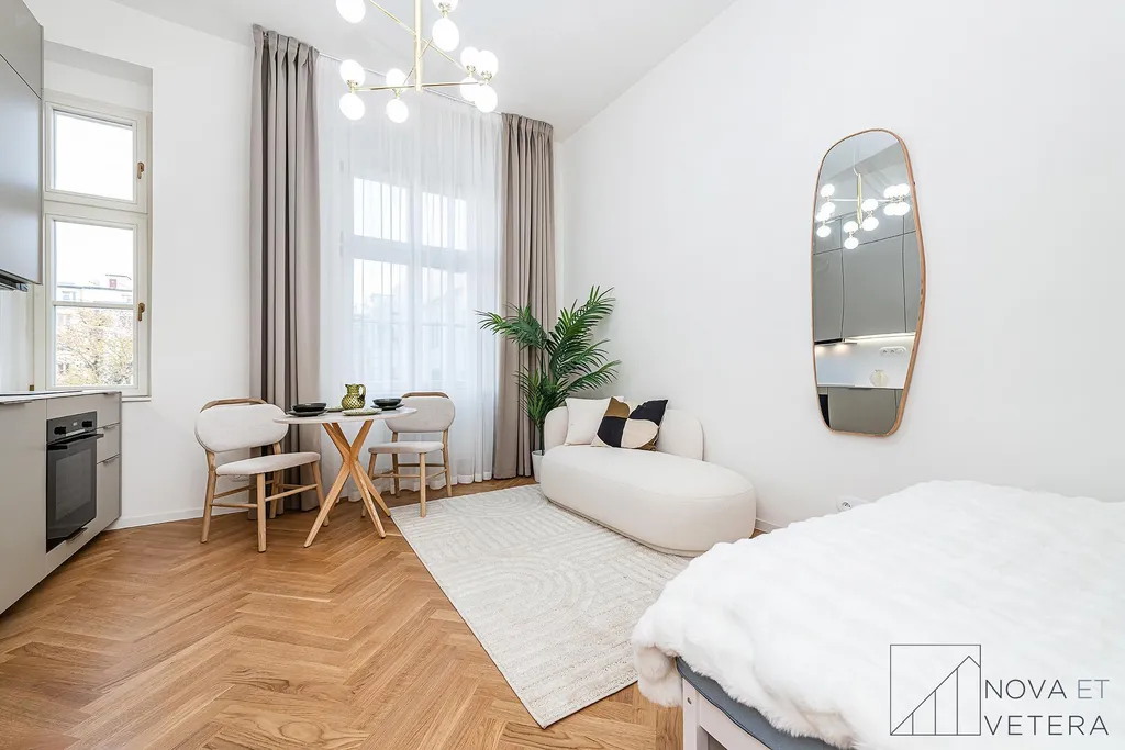 Tento byt je součástí citlivě zrekonstruovaného domu z roku 1898 v srdci Královských Vinohrad, který nabízí celkem 20 bytových jednotek o dispozicích 1+kk a 2+kk. Projekt spojuje původní architektonické prvky s nadčasovým designem a vysokým standardem. Výsledné byty nabízí ideální příležitost pro ty, kteří hledají elegantní a moderní bydlení na Vinohradech, stejně jako pro ty, kteří ocení stabilní lokalitu a silný investiční potenciál.