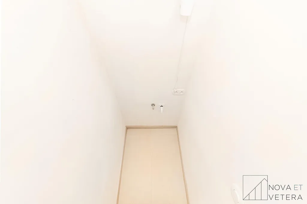 Byt je dispozičně řešen jako 2+kk a nabízí světlý obývací pokoj s kuchyňským koutem, samostatnou ložnici, koupelnu s průchozím sprchovým koutem a dvoumyvadlem, samostatnou toaletu a praktickou technickou místnost. Byt je orientován na východ do klidného vnitrobloku, což poskytuje příjemné ranní světlo a maximální klid.
