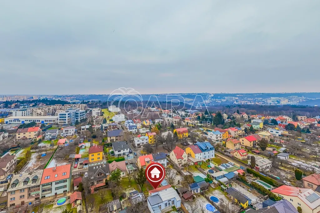 Nemovitost se nachází v druhé linii od ulice, díky čemuž nabízí příjemný klid a naprosté soukromí. V okolí je výborná občanská vybavenost i dopravní dostupnost – autobusová zastávka s přímým napojením na metro je pouhých 5 minut pěšky.