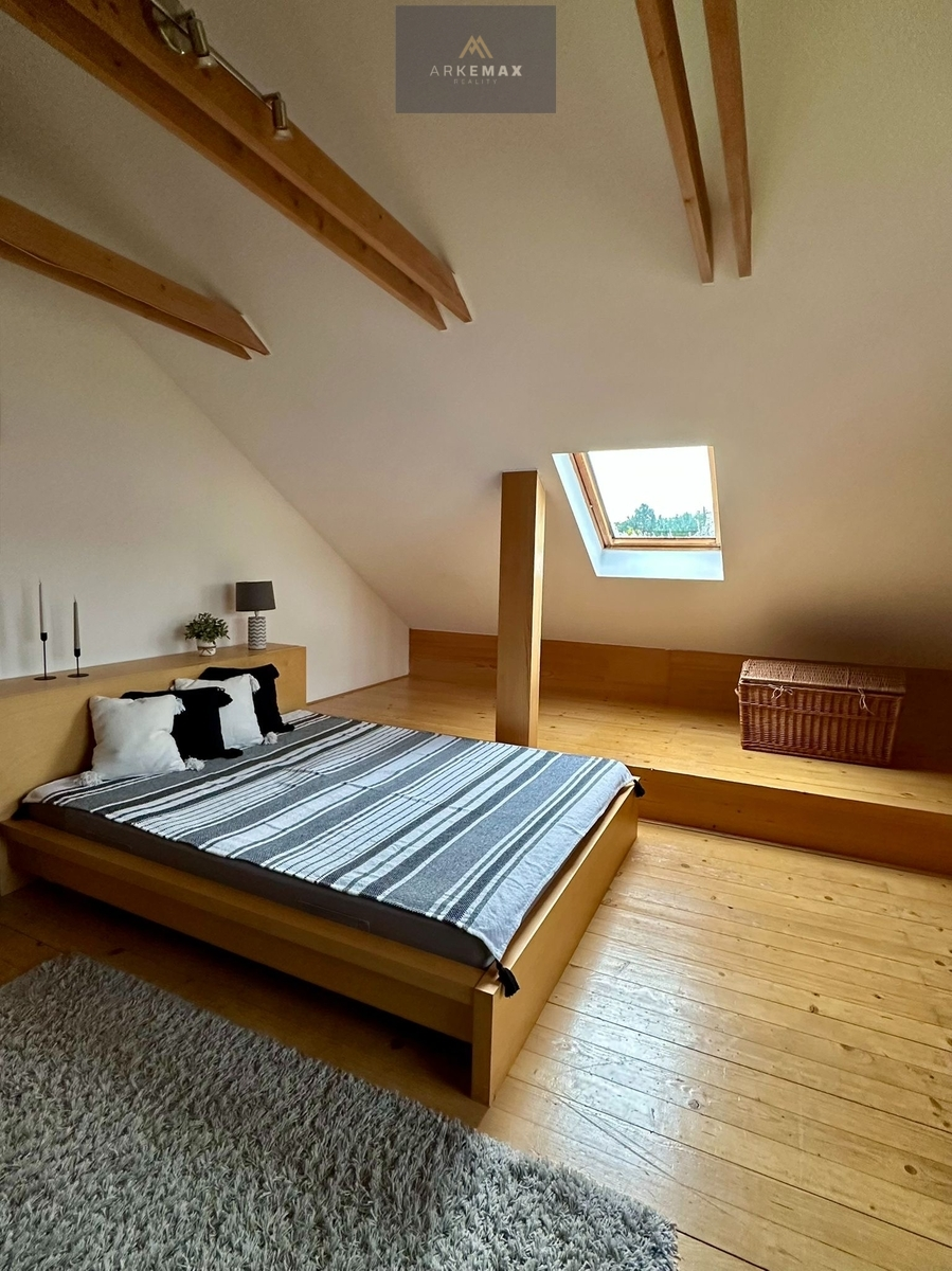 1. patro – útulný obývací pokoj s kuchyní, ložnice a koupelna s WC a wellness