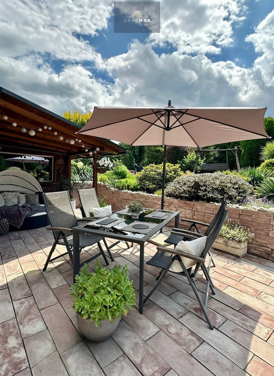 prostorná terasa (8 × 3,5 m) ideální pro rodinná posezení
