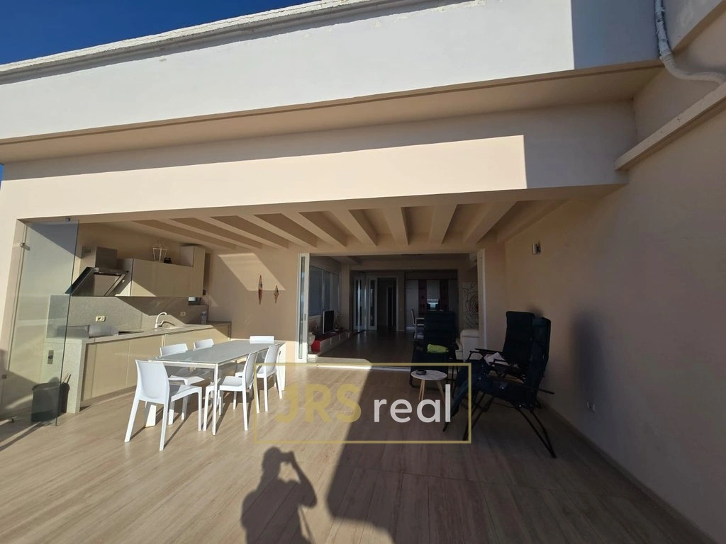 velká veranda s otevřeným výhledem na moře, ideální pro posezení při západu slunce