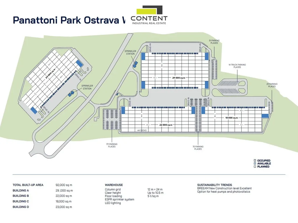 - budova C, až 19200 m², k dodání do 12 měsíců,