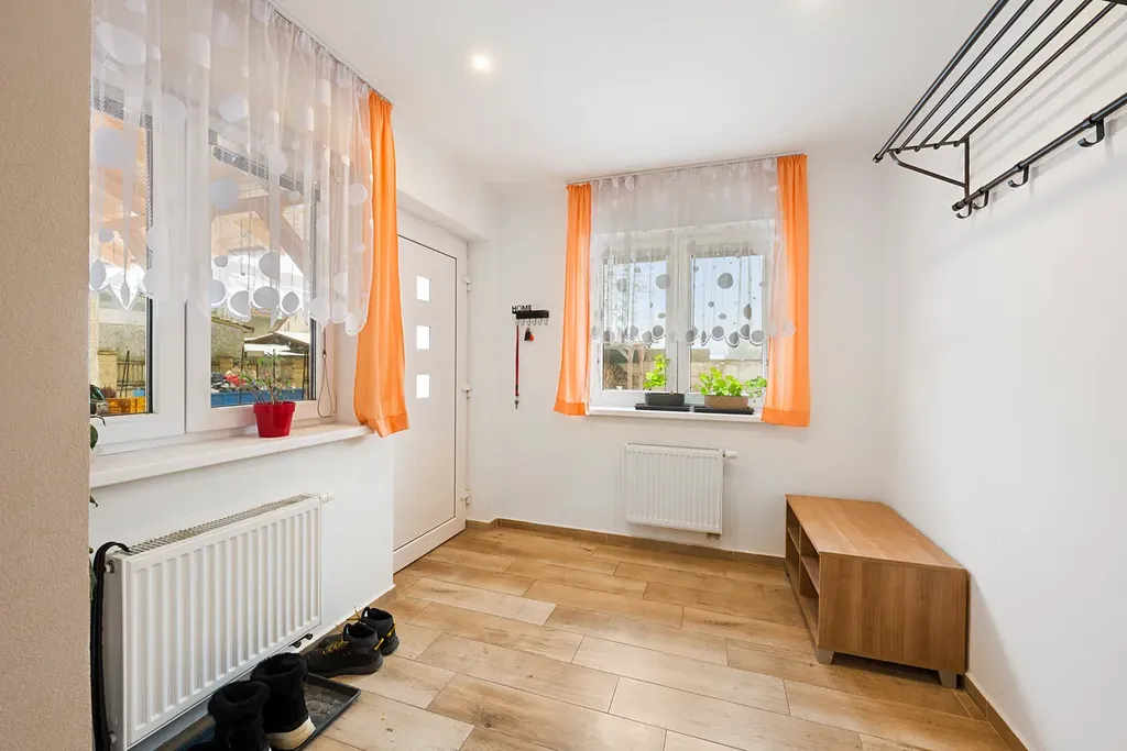 Cihlový jednopodlažní dům se zastavěnou plochou 130 m², čistá podlahová plocha 95 m2, prošel kompletní rekonstrukcí v roce 2024 : nová zateplená fasáda z ulice, elektrika, voda, rozvody topení, odpady, nová střešní krytina, nová plastová okna s venkovními roletami na oknech do ulice, plynový kotel Viessmann.