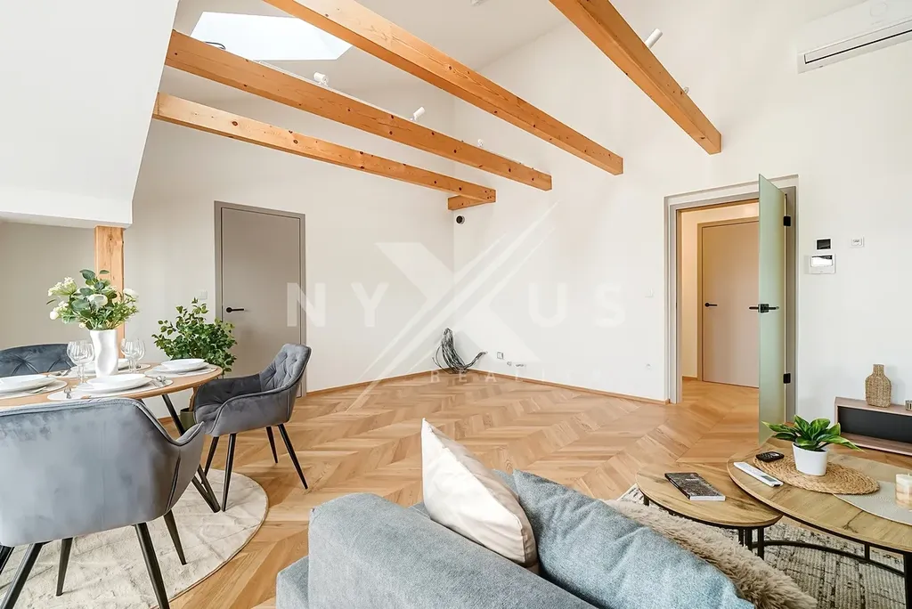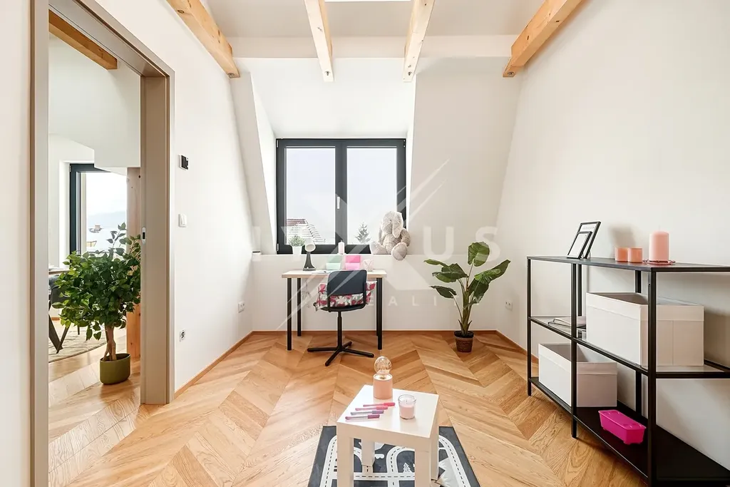 V nejvyšším podlaží kompletně zrekonstruované prvorepublikové vily se nachází tento výjimečný byt 4+kk o ploše 104 m², doplněný o terasu 6 m², půdní prostor 20 m² a sklep 9 m². Vila nabízí pouze tři bytové jednotky, což zajišťuje klid, soukromí a komorní atmosféru bydlení. Součástí prodeje jsou dvě venkovní parkovací stání. Na pozemku je dále možnost dokoupení samostatné garáže.