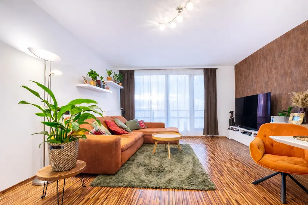 Kompletně zařízený byt (pračka, plně vybavená kuchyňská linka, vestavěné skříně, postel, sedačka, stůl se židlemi) vás neuchvátí jenom pobytem uvnitř, ale také venku při pobytu na velkorysé lodžii s výhledem na údolí Záběhlic a Spořilova, přímo pod ní je pak pozemek plný zeleně. Tady budete chtít trávit moře času. Vstup na ní je z obou pokojů a orientována je na západ, takže si v létě užijete dlouho světlo a nepaří vám celý den do bytu.