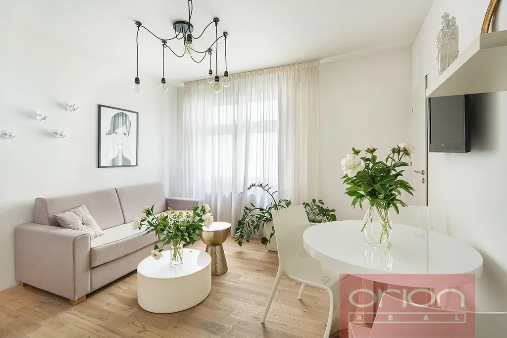 Nabízíme k pronájmu mezonetový byt 2+kk s terasou v 5. patře zrekonstruovaného domu z 19. století v Praze 5. V domě je výtah. Zařízený byt o rozloze 55 m2 nabízí ve spodním patře kuchyň plně vybavenou všemi spotřebiči, koupelnau, šatnu a obývací pokoj, v horním patře je pak ložnice se vstupem na terasu. K vybavení bytu patří klimatizace, TV/SAT/WIFI.