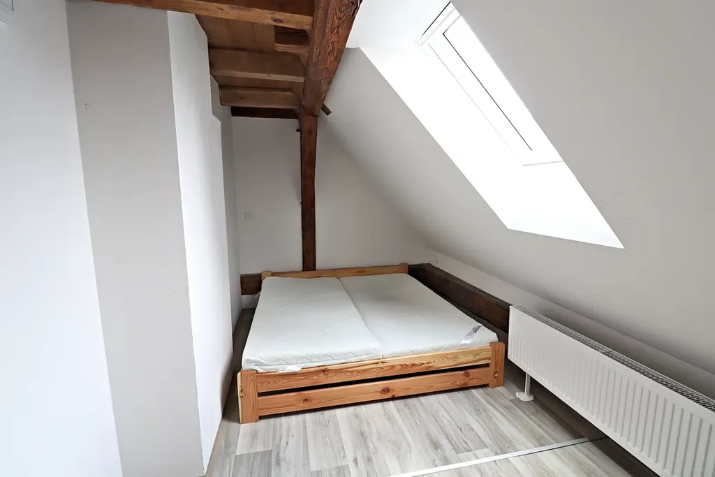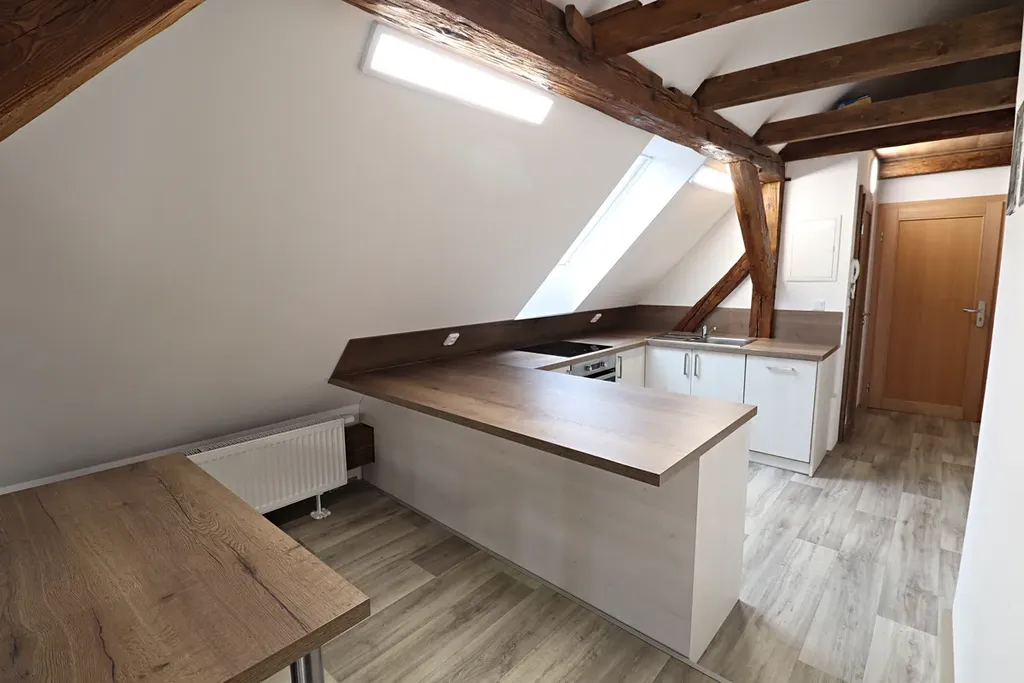 Nabízíme k pronájmu bytovou jednotku 2+kk, která se nachází ve třetím nadzemním podlaží zrekonstruovaného historického domu. Dům prošel v posledních letech celkovou rekonstrukcí. Bytová jednotka je zařízena kuchyňskou linkou se sklokeramickou deskou, troubou myčkou. Dále je zde pračka, sušička, postel, šatní skříň a jídelní stůl se židlemi. Měsíční nájem činí 12.000,-Kč plus energie a služby 4.000,-Kč. Kauce 24.000,-Kč plus odměna RK. Máme zájem o slušné pracující nájemníky bez domácích mazlíčků.