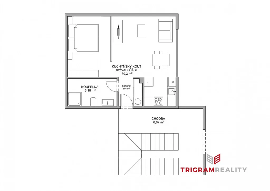 Atypický byt 1+kk, 38,5 m² s velkou střešní terasou cca 30 m²