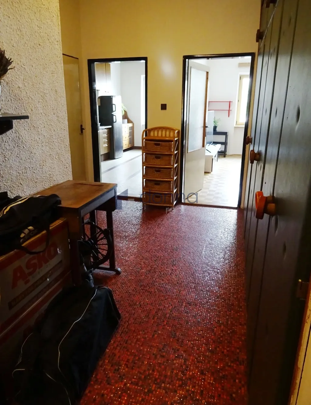 Byt je částečně zařízený, skládá se ze dvou samostatných prostorných pokojů oddělených dlouhou chodbou, prostorné kuchyně a dvou samostatných komor, jedna je určena na pračku (s kohoutem na vodu) a druhá jako prostor na ukládání věcí.
