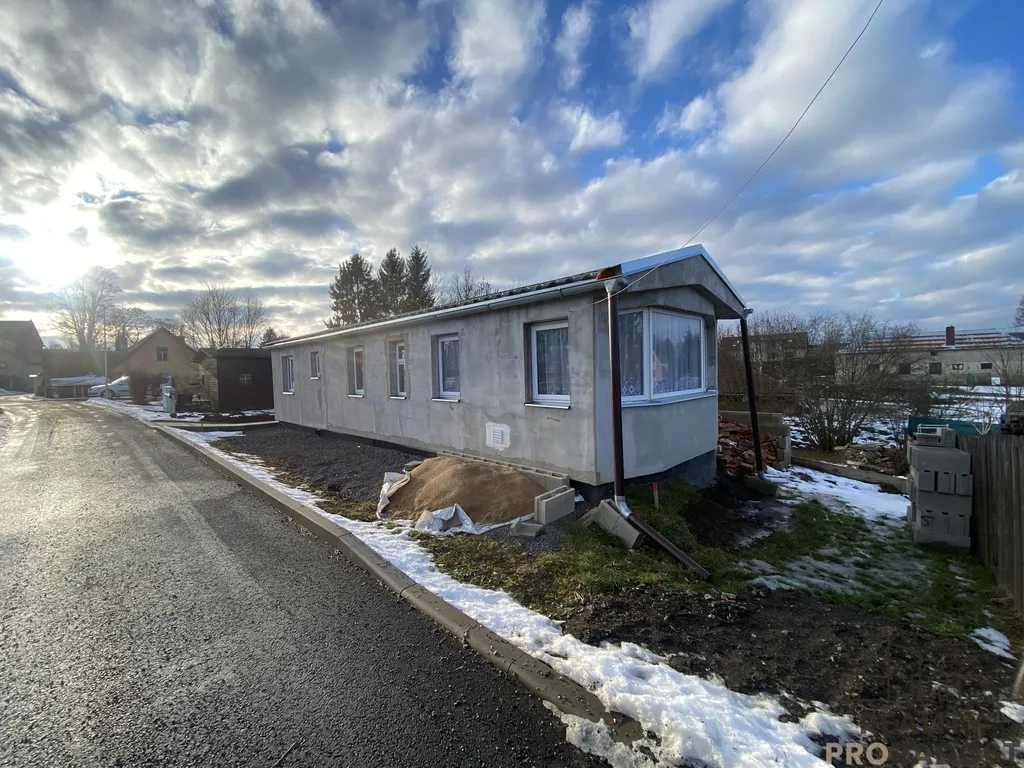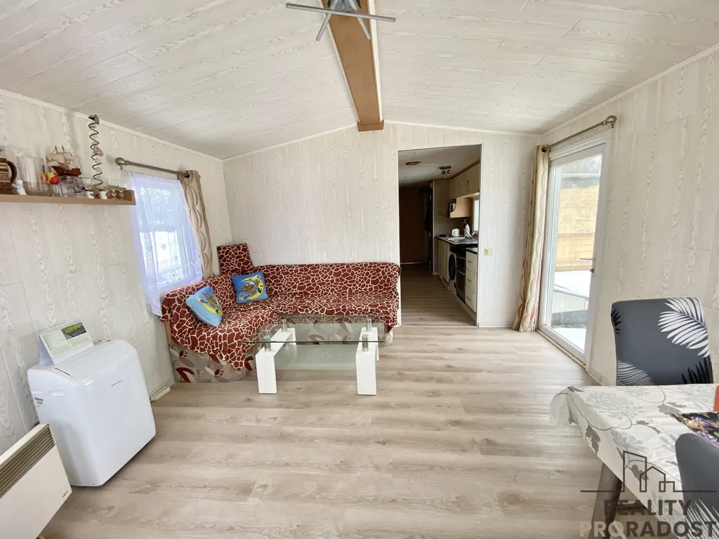 Na pozemku je umístěný mobilheim o rozměrech 48 m2, který je součástí prodeje. Mobilheim je dispozičně řešený jako 3+1, je zde kuchyně, prostorný obývací pokoj, dvě ložnice a velká koupelna s umývadlem, sprchovým koutem a WC. Mobilheim je zateplený s novou střechou. Mobilheim je napojený na elektřinu, obecní kanalizaci a vodovod. Mobilheim se vytápí elektrickými přímotopy nebo plynem, ohřev vody je zajištěn plynovou karmou . Na mobilheim navazuje terasa s výhledem do zahrady.