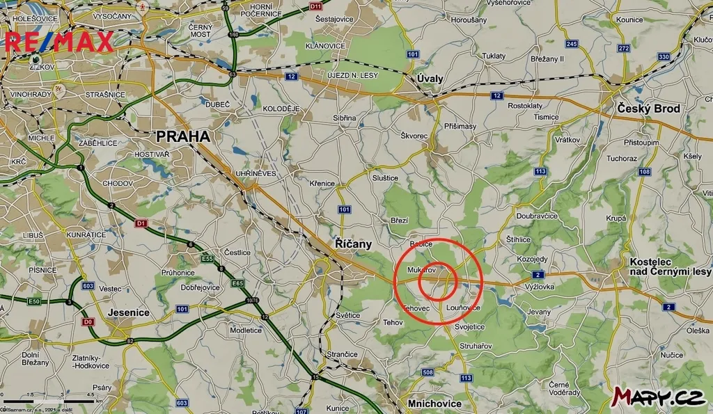 Dopravní dostupnost automobilem: Praha 21 km metro A i C, vlak Říčany 5 km. PID: Autobusová zastávka je jen 100 m u domu, spoje na Prahu jezdí každých 10-30 min. Jedná se o hlavní trasu na Kutnou Horu, BUS jezdí od brzkých ranních hodin do půlnoci včetně nočního spoje.