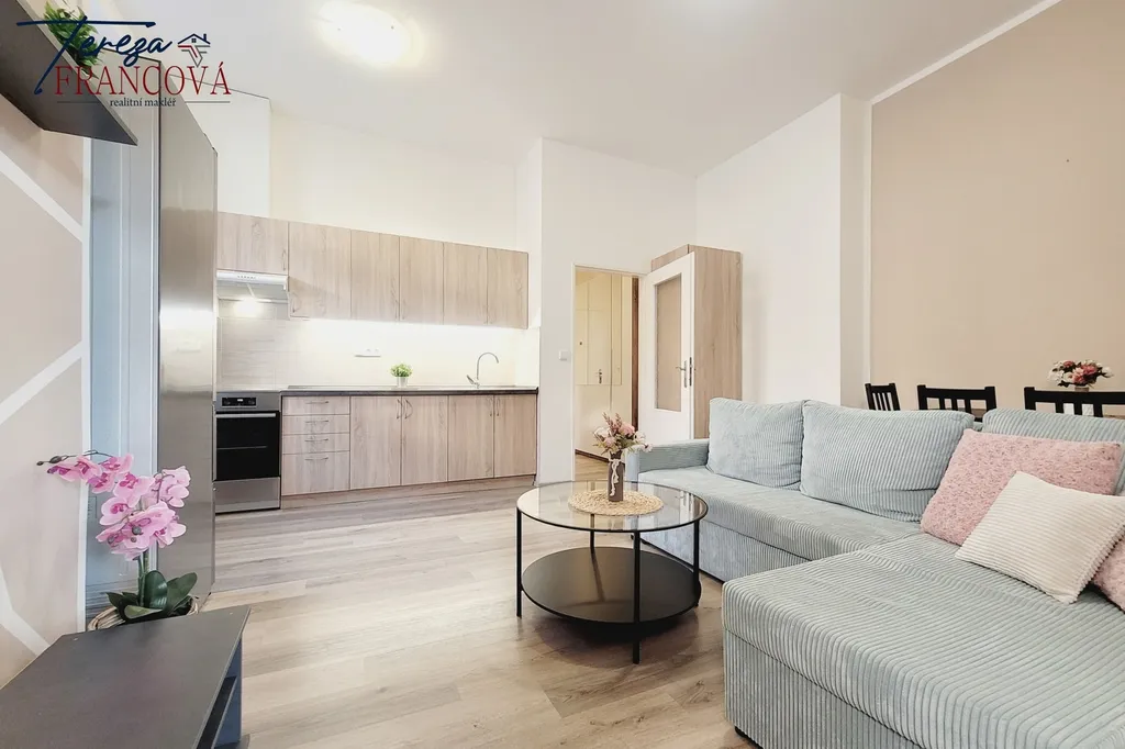 Byt o dispozici 2+kk prošel velmi zdařilou rekonstrukcí a je laděn do moderního stylu. Díky vyšším stropům a velkým oknům působí interiér vzdušně a světle, což výrazně přispívá k příjemnému pocitu z bydlení.