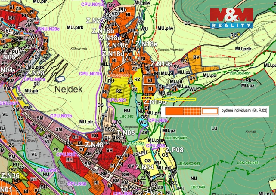 Dle územního plánu je pozemek veden v ploše BI – bydlení individuální, což umožňuje výstavbu rodinného domu až o 2 nadzemních podlažích + podkroví. Lokalita je vhodná jak pro vlastní bydlení, tak i jako investice do budoucí výstavby.
