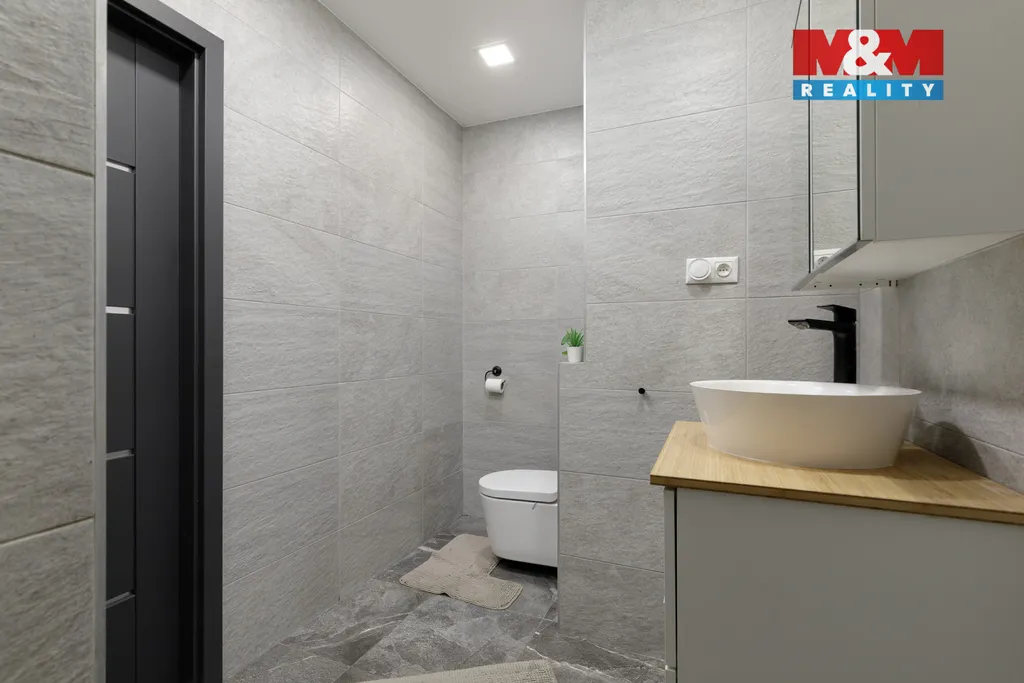 Rekonstrukce zahrnovala nové podlahy, omítky, elektroinstalaci, kuchyň i koupelnu. Dům je po kompletní revitalizaci – zateplená fasáda, plastová okna a nový výtah.