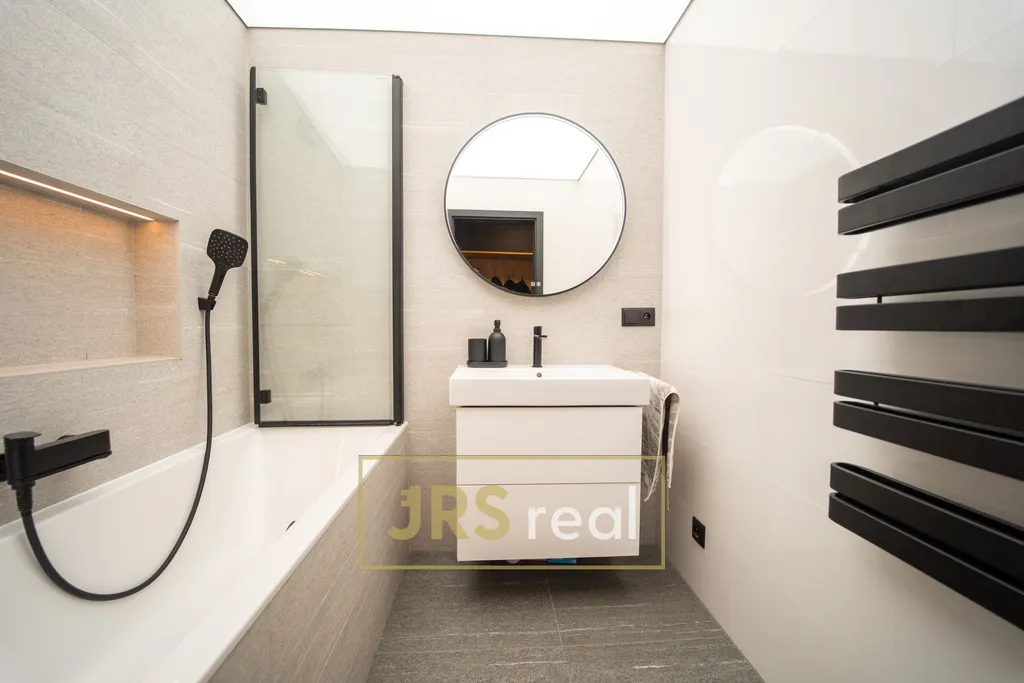 Ve výhradním zastoupení majitele nabízíme k prodeji moderní, plně vybavený a kompletně zrekonstruovaný byt o dispozici 3+kk a celkové ploše 84 m², který se nachází ve 2. patře bytového domu bez výtahu v Hustopečích. Byt prošel velmi rozsáhlou rekonstrukcí a původní zůstalo pouze obvodové zdivo, které bylo částečně přestavěno z Ytongu do dispozice 3+kk. Po vstupu do bytu Vás přivítá prostorná chodba s vestavěným předsíňovým setem, ze které je zajištěn vstup do všech místností. Naproti vstupním dveřím se nachází samostatná toaleta a vedle ní koupelna vybavená vanou, umyvadlem a otopným žebříkem. Vedle koupelny je praktická technická místnost s pračkou, sušičkou a plynovým kotlem, který zajišťuje podlahové topení a ohřev vody. Ložnice je zařízena dvoulůžkovou postelí, nočními stolky, televizí a vestavěnou šatní skříní. Vedle ložnice se nachází prostorný dětský pokoj. Dominantou bytu je hlavní obytná část – obývací pokoj propojený s kuchyní. Kuchyňská linka je vybavena kvalitními spotřebiči – vestavěnou troubou, mikrovlnnou troubou, digestoří, sklokeramickou varnou deskou a myčkou. Lednice je prakticky umístěna ve spižírně, která má vchod přímo vedle kuchyňské linky. V kuchyni je dále jídelní stůl se židlemi a vstup na balkon. Byt prošel před rokem kompletní rekonstrukcí, při které byla původní dispozice 3+1 změněna na moderní 3+kk. Byly položeny nové plovoucí podlahy, osazena nová plastová okna s předokenními elektrickými žaluziemi a v celém bytě byly instalovány klimatizační jednotky. Byt lze technicky upravit zpět do dispozice 3+1. K bytu náleží garáž s dálkově ovládanými vraty Lomax (ovládání možné i přes telefon), zahrádka, dva sklepy a také půdní prostor vhodný ke skladování. Na zahrádce se nachází hliníková pergola s posezením a vířivkou, které poskytuje ideální místo pro relaxaci. Měsíční náklady na energie činí cca 5 000 Kč a příspěvek do fondu oprav je 900 Kč/měsíc. Město Hustopeče nabízí kompletní občanskou vybavenost, výbornou dostupnost do Brna i Břeclavi a je vyhledávanou lokalitou díky vinařské tradici, okolní přírodě a bohatým možnostem sportovního i kulturního vyžití. V případě zájmu o tuto nemovitost kontaktujte makléře.