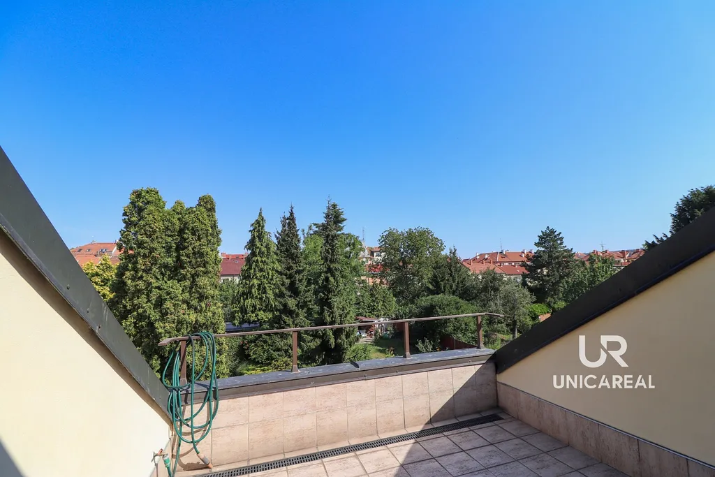 Byt se nachází ve druhém podlaží rodinného domu s podlahovou plochou 129 m², terasou 16 m² s posezením a krásným výhledem do vnitrobloku rodinných domů.
