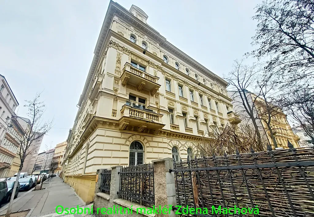 Byt se nachází v 1. nadzemním podlaží stylového vinohradského domu, který prošel rekonstrukcí a je situován v oplocené zahradě. Výhled z bytu směřuje právě do této zelené, uzavřené zahrady, což zajišťuje klid a soukromí.
