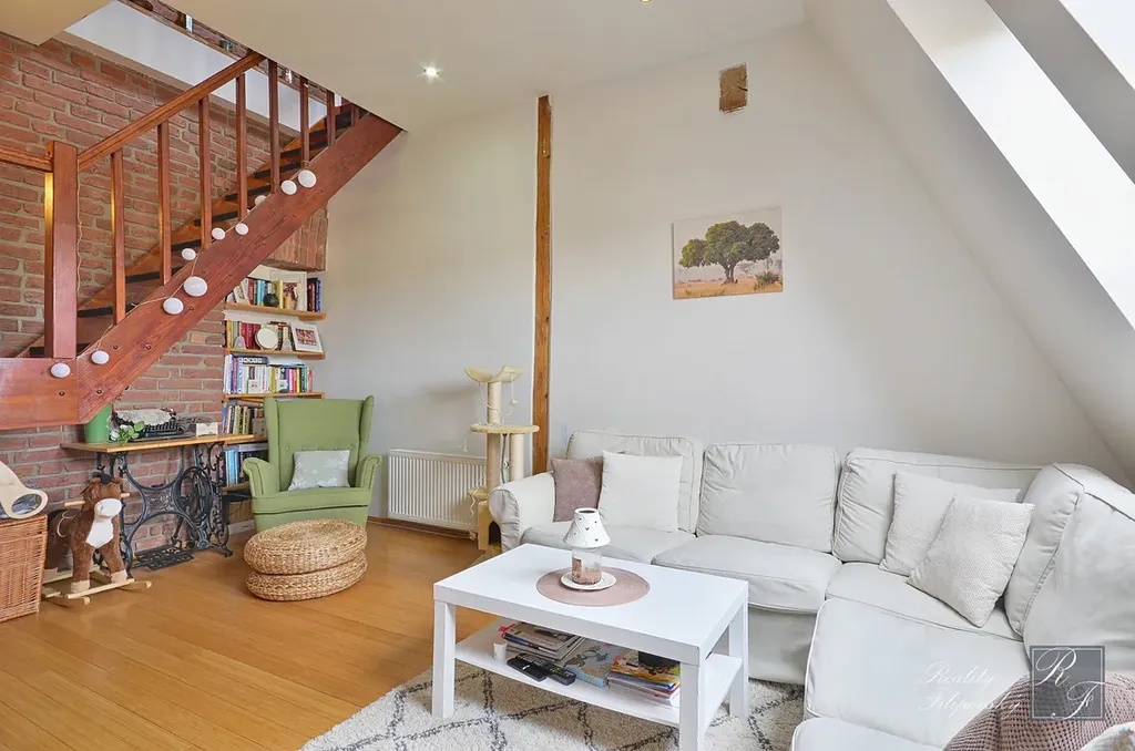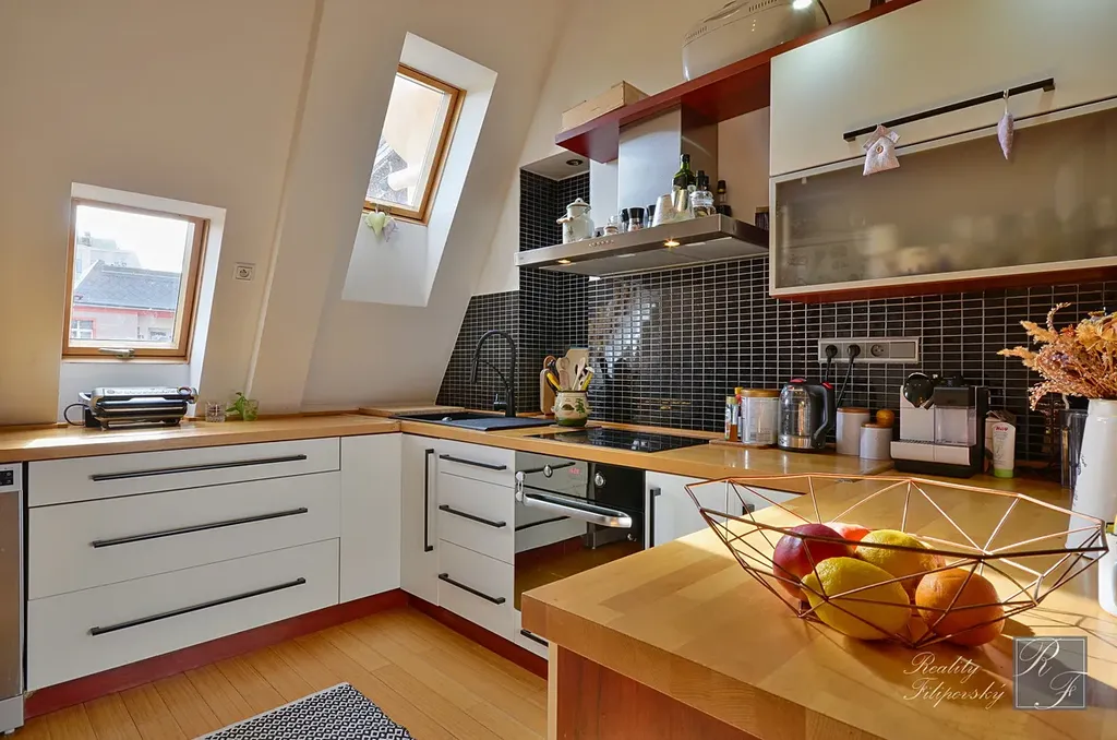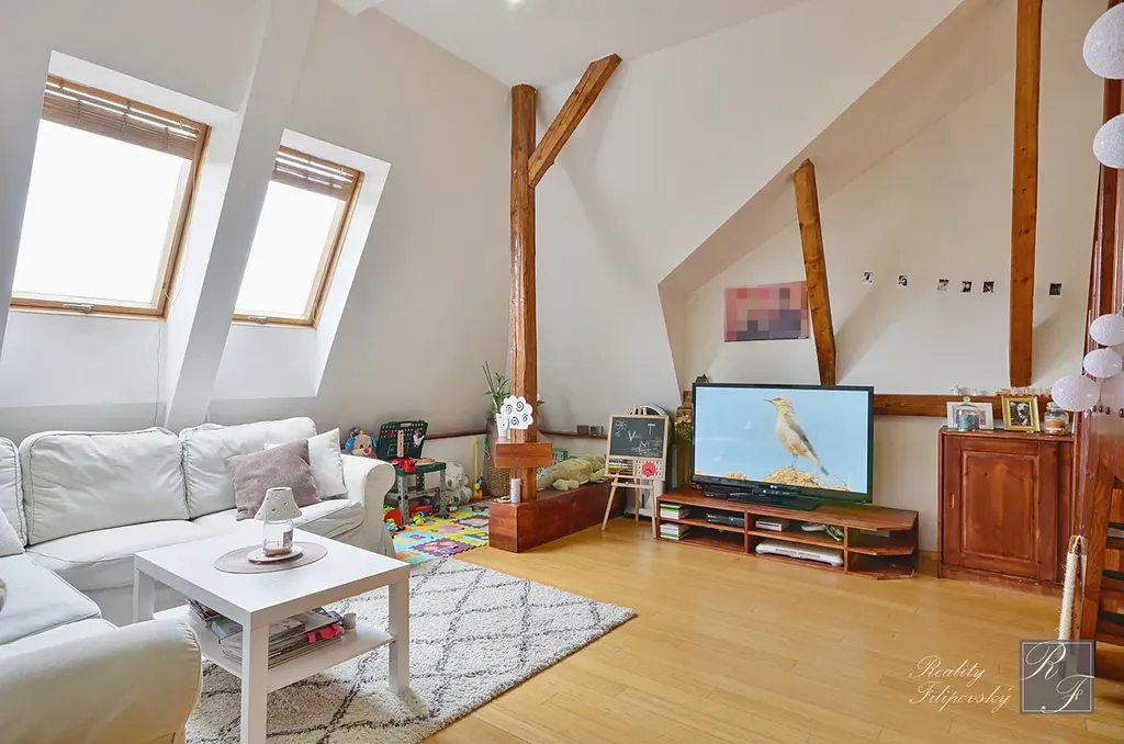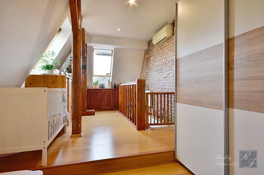 Bytová jednotka vznikla zdařilou adaptací části půdního prostoru s přiznáním jeho konstrukčních prvků, které poskytují tomuto bydlení zcela jedinečný charakter. Stávající dispoziční řešení klade důraz na pocit vzdušnosti celého interiéru, což se mu dokonale daří. Nedávno byl v bytě instalován nový plynový kotel s chytrou regulací.