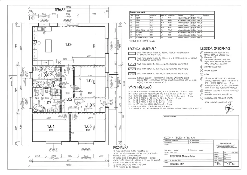 Na výstavbu rodinného domu je vypracovaná projektová dokumentace a bylo zažádáno o stavební povolení. Přízemní rodinný dům o velikosti 4+kk s užitnou plochou 138 m2 (zádveří, chodba, 3x ložnice, obývací pokoj s kuchyňským koutem, koupelna, WC s umyvadlem, technická místnost).