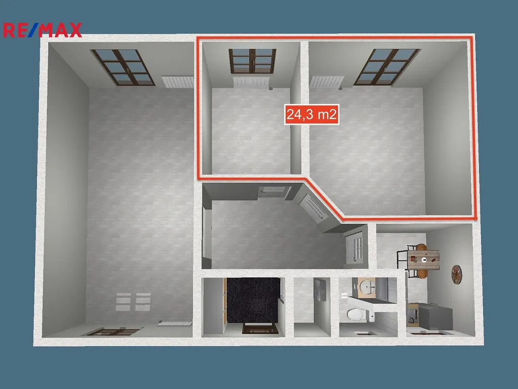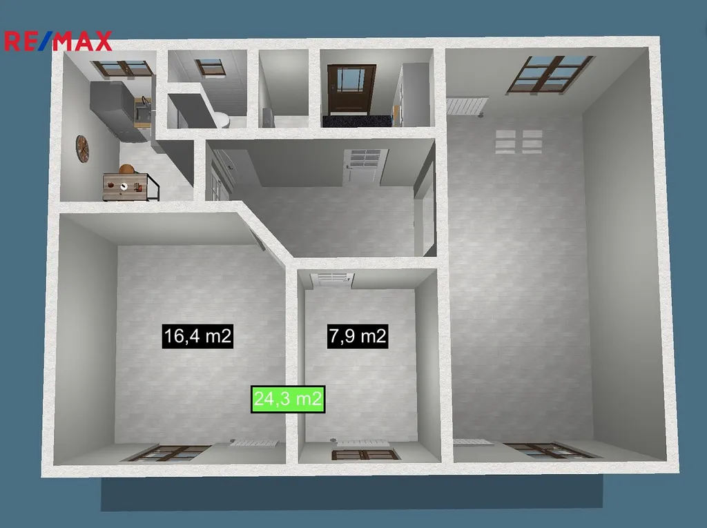 Objekt je nabízen bez zařízení a v současné době prochází rekonstrukcí spojenou se změnou dispozic (dle půdorysu).