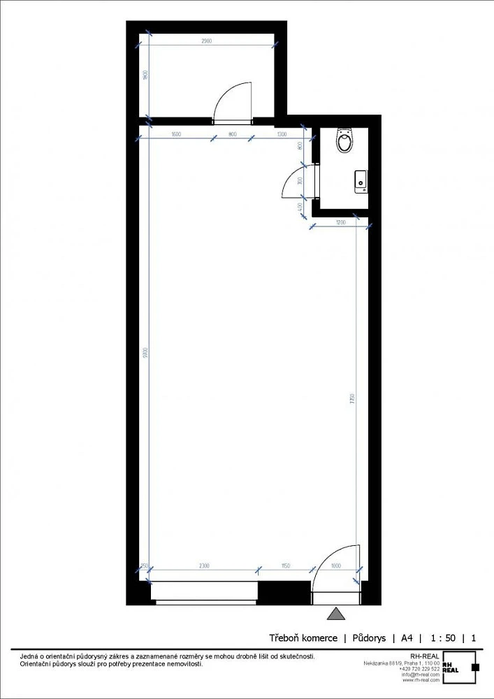 Obchodní prostor má vstup přímo z ulice a disponuje velikou výlohou.