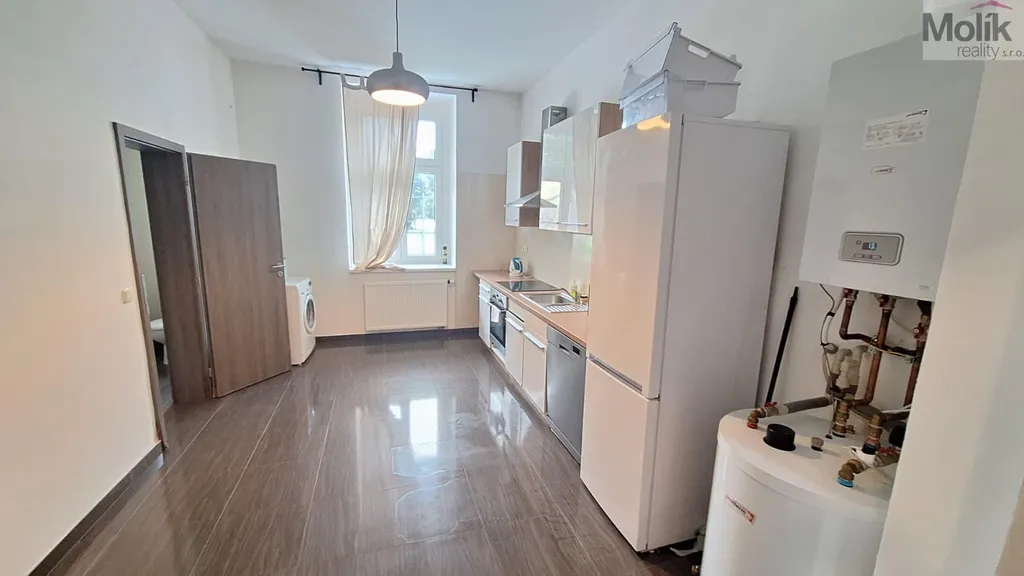 Nabízíme k prodeji velice pěkný byt 3+1 v osobním vlastnictví o podlahové ploše 114 m2 v 1. NP. cihlového domu v Teplicích, ul. Zeyerovo náměstí. Bytová jednotka se nachází ve velice oblíbené lokalitě Šanov I. obklopené zelení a lázeňskými parky, je po rekonstrukci - kuchyňská linka se zabudovanými spotřebiči, plovoucí podlahy, keramická dlažba, nová dveřní křídla a obložky, dvě vyzděné koupelny obložené keramickými obklady se sprchovými kouty a toaletami. Bonusem k bytu je menší zahrádka za domem a sklepní koje. Cena je včetně vybavení bytu, menší opravy po nájemníkovi. Ohřev vody a tepla pomocí plynového kotle. Volný dle dohody. V okolí je veškerá občanská a dopravní vybavenost. Dům je osazen plastovými okny. S financováním Vám rádi pomůžeme.