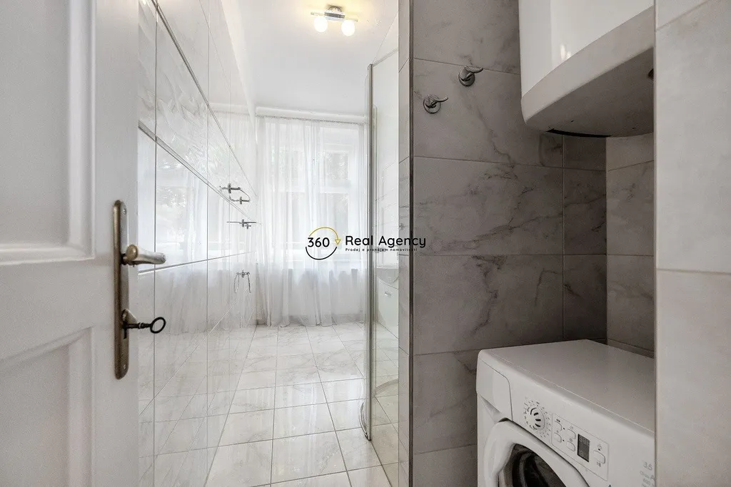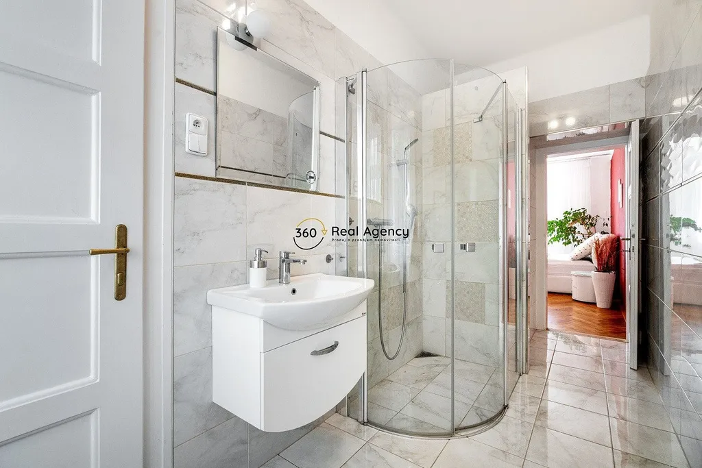 Zachovalé dřevěné parkety, vysoké stropy a okna na dvě světové strany vytvářejí výjimečnou atmosféru bytu s duší. Prostor je světlý, vzdušný a působí velmi klidně – ideální jak pro rodinu, tak pro náročného jednotlivce.