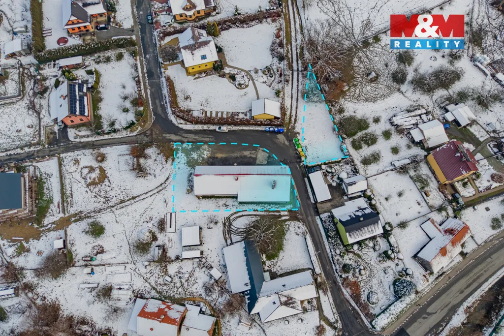 Součástí prvního prostoru o výměře 128 m2 je sociální zázemí - WC, sprcha, šatna a kuchyňka, součástí druhého skladu o výměře 45,5 m2 je WC, třetí sklad má výměru 43,3 m2. Výška 3 m, výška vrat 2,9 m. Vytápění el. přímotopy. Součástí nájmu je i manipulační prostor před nemovitostí o výměře 265 m2 s možností parkování až 8 automobilů a venkovní prostor o velikosti 363 m2, po dohodě možno oplotit a používat jako venkovní sklad. Příjezd po obecní komunikaci i pro kamiony. Ideální využití jako sklad nebo tichá dílna. K pronájmu ihned.