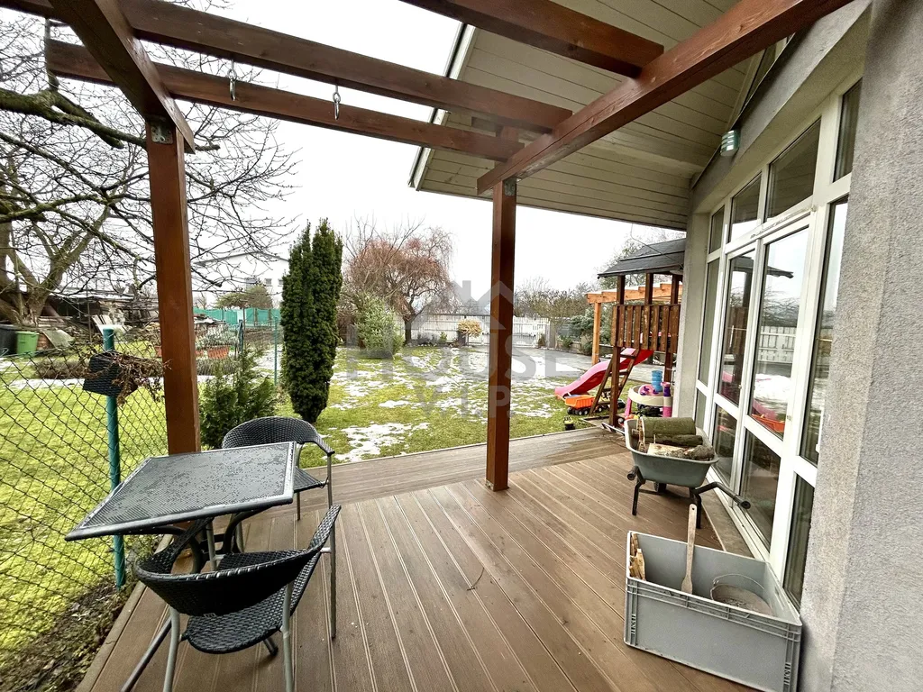 Rovinatá, slunná zahrada je nenáročná na údržbu, nabízí terasu s pergolou, venkovní krb, vzrostlé stromy i prostor pro relaxaci. Parkování je možné v garáži, pod krytým stáním i na vlastním pozemku, další stání je přímo před domem.