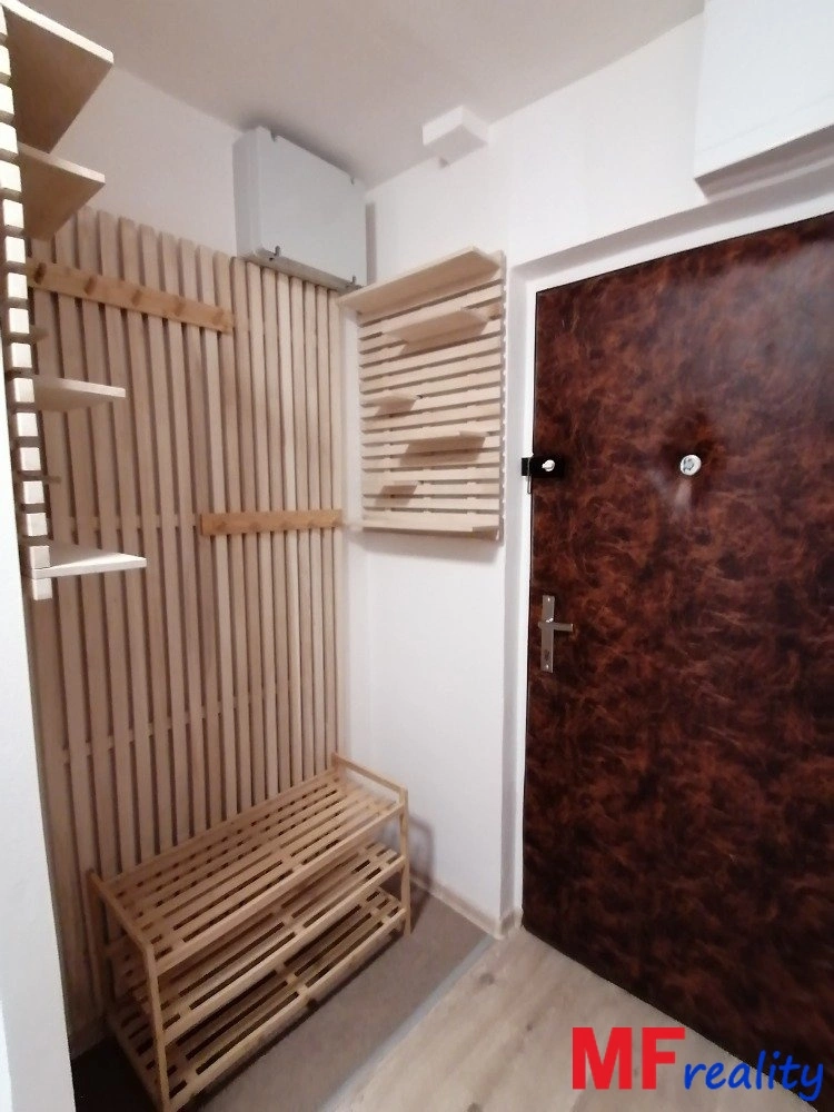 Dispozici tvoří: vstupní chodba s upevněným dřevěným věšákem a botníkem, samostatná toaleta a přiléhající koupelna. Naproti vstupním dveřím se nachází ložnice se šatní skříní.