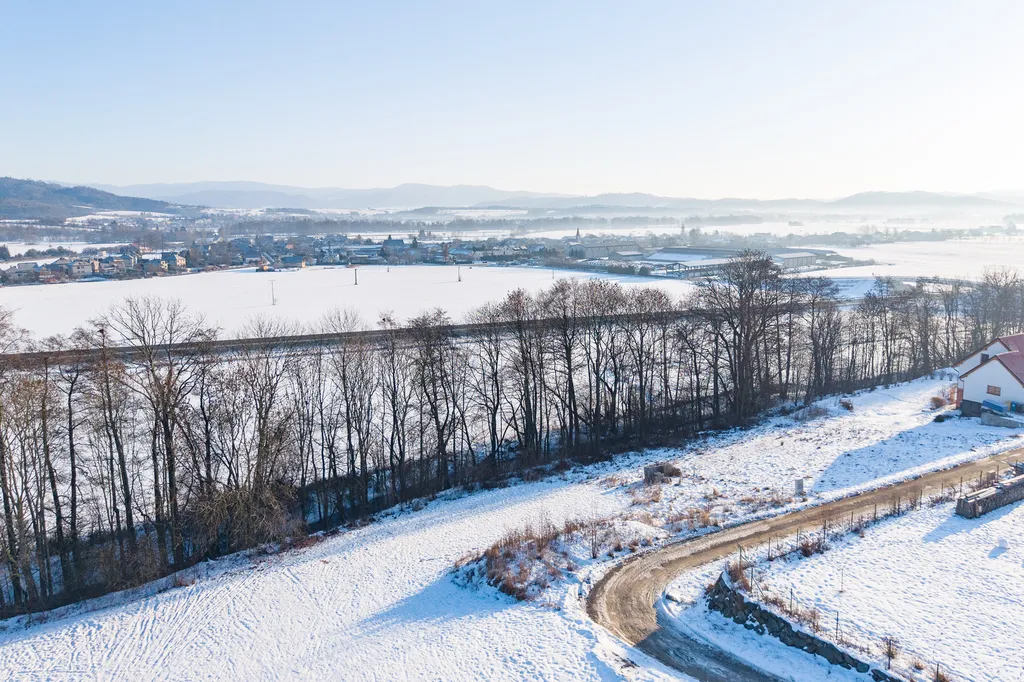 Nabízený předmětný pozemek se nachází v okrajové jihovýchodní lokalitě obce, je v částečně svažitém terénu. Pro někoho ale částečná svažitost parcely může být výzvou jak si zajímavě postavit svoji nemovitost například s účelným zázemím 1. PP s otevřeným vstupem z něj do zahrady za domem nebo za domem k vytvoření si členitější skalky na okrasné zahradě. Spodní část pozemku směrem od příjezdové cesty tvoří pás s listnatými dřevinami, který představuje hlukovou zábranu. Není ani vyloučeno, že z této části do budoucna dle záměru a potřeby vlastníka může vzniknout i zahrada s ovocnými stromy.