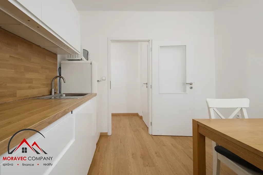 Byt je plně vybaven – nechybí nábytek, spotřebiče, nádobí. Stačí si jen přinést osobní věci a můžete bydlet!