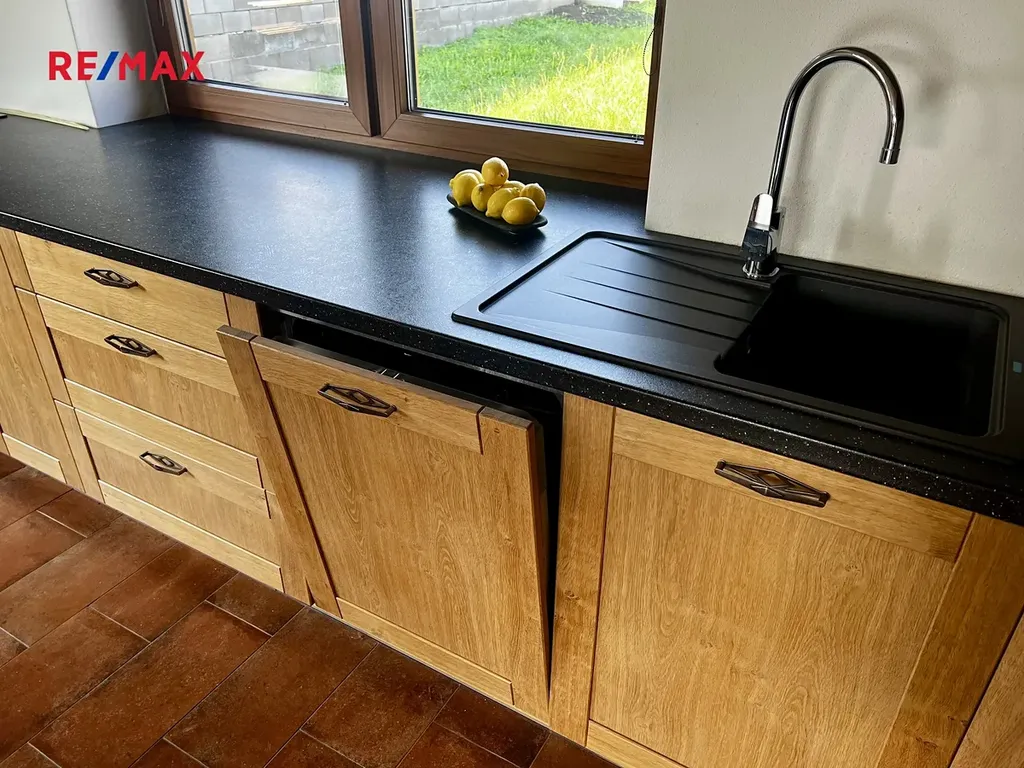 Hlavní okno v kuchyni je orientováno na západ, což vám zajistí krásné světlo při při přípravě jídla a světlo v zimních měsících.