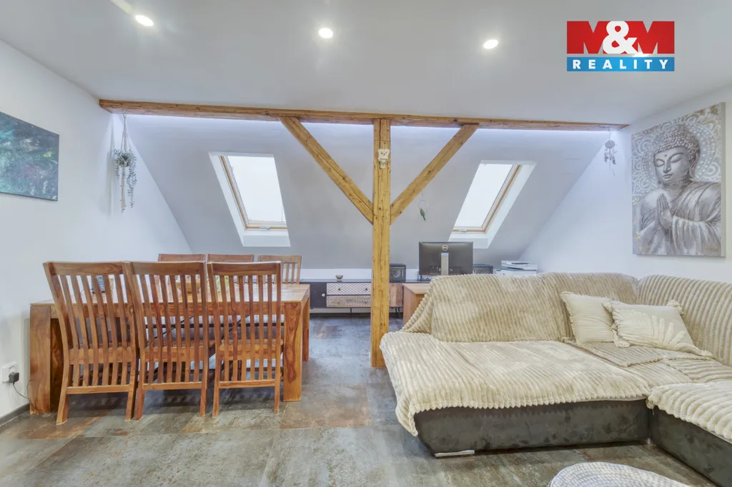Nabízíme k prodeji prostorný byt o dispozici 4+1 s užitnou plochou cca 109 m², nacházející se ve 2. nadzemním podlaží rodinného domu se dvěma bytovými jednotkami v klidné části Černošic, ulice Komenského. Předmětem prodeje je ideální spoluvlastnický podíl o velikosti 1/2 na rodinném domě, přičemž užívání je dlouhodobě fakticky rozděleno a každý spoluvlastník užívá samostatnou bytovou jednotku.