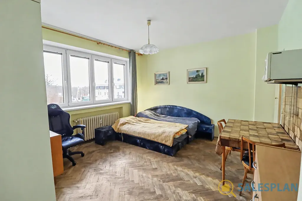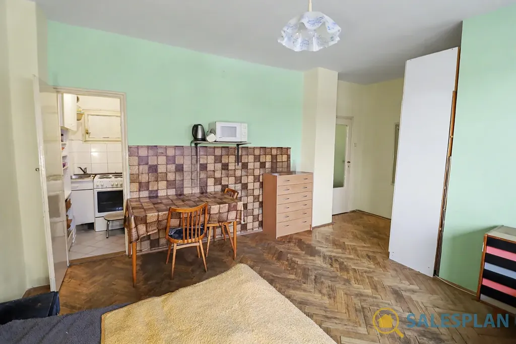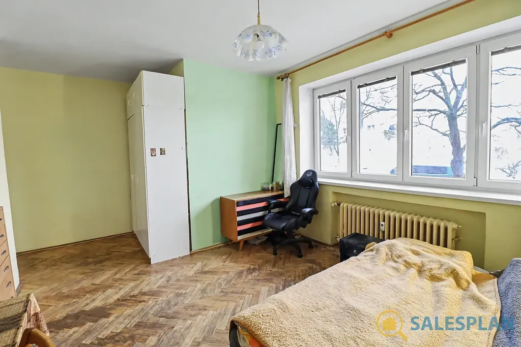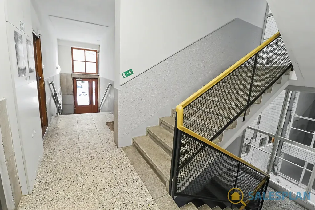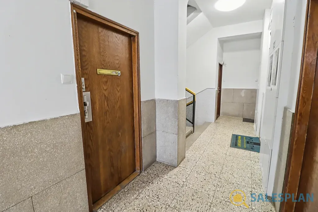 Bytová jednotka se nachází v prvním nadzemním podlaží komorního cihlového domu. Je v dobrém a průběžně udržovaném stavu, avšak s potenciálem pro modernizaci dle vlastních představ. Podlahovou krytinou jsou parkety, které po renovaci mohou být zajímavým designovým prvkem. Dispoziční řešení jednotky je velmi efektivní. Byt se skládá z prostorného obývacího pokoje s kuchyňským koutem, který svým umístěním nenarušuje obývací a jídelní část. Centrální vstupní chodba poskytuje dostatek úložného místa díky prostoru pro vestavěnou skříň. Koupelna a toaleta jsou řešeny samostatně.