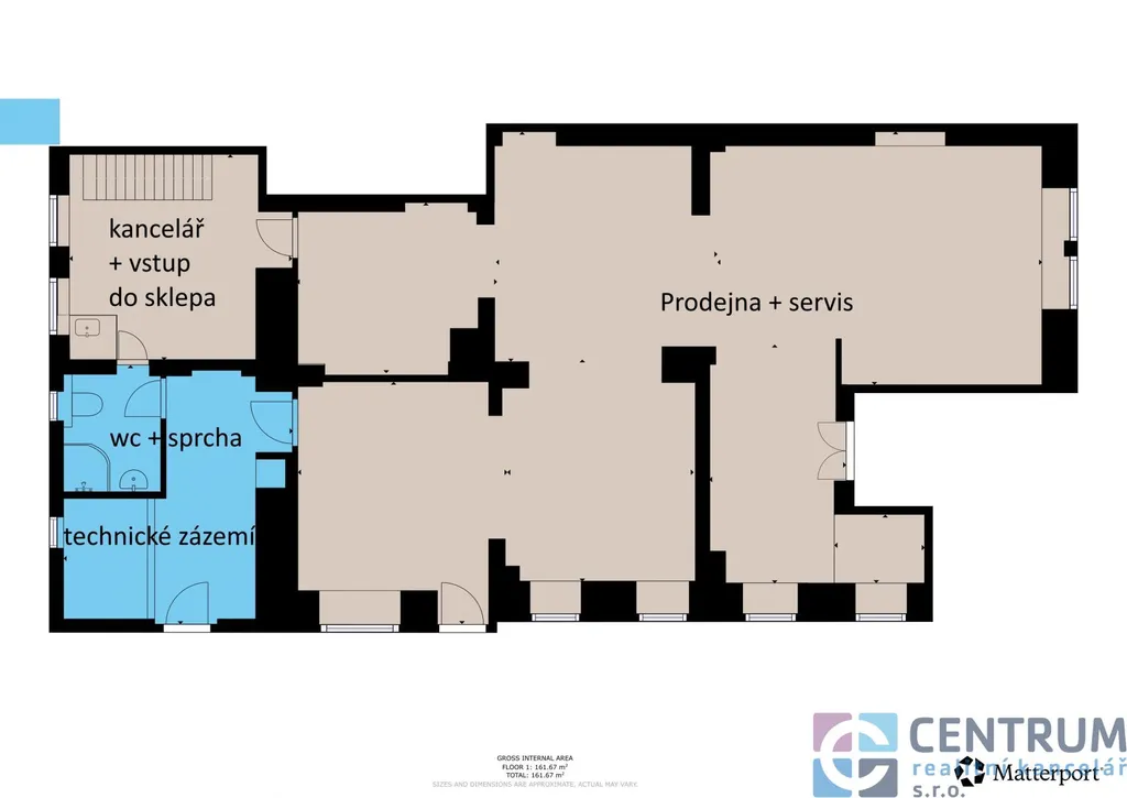 Velká výměra společně s variabilitou jednotlivých místností (dispozici lze upravovat prostřednictvím příček) umožňuje přizpůsobení Vašemu konkrétnímu záměru. Nezávislý vstup zajišťuje maximální soukromí, komfort pro zákazníky i svobodu v nastavení provozní doby.