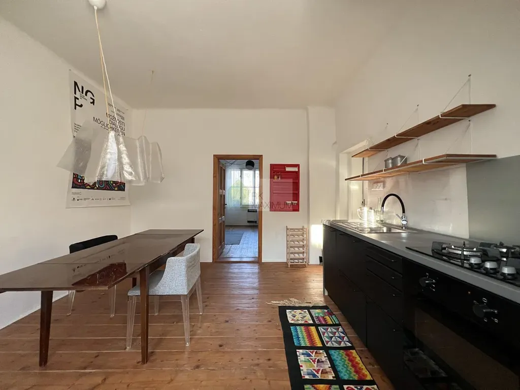 Ve velice příjemné klidné části Zahradního Města nabízíme k pronájmu na cca 1-2 roky nadčasově zrekonstruovaný a v podstatě zařízený (vybavení viz fota) byt ve 2. nadzemním podlaží řadového rodinného domu. Plocha cca 55 m2, dispozice viz. plánek, příslušenstvím je půdní prostor a menší sklep v suterénu domu. Ohřev vody elektrickým boilerem, vytápění obytných místností WAW, koupelny s toaletou elektrickým infrapanelem. V bytě jsou nové rozvody vody a elektřiny, repasované dveře, podlahy dřevěné, terazzo a vinyl. Dům není zateplený, okna jsou původní špaletová. Místo je velice příjemné pro bydlení, ulice je tichá, v těsné blízkosti je veškerá občanská vybavenost (obchody, restaurace, kavárna, parky, lékaři, tenisové kurty, fitness a jiná sportoviště,..). Vynikající dopravní dostupnost veřejnou dopravou - zastávka tramvají do centra a autobusů k metru A či C cca 7 min chůze, vlaku Praha - Zahradní Město do 10min chůze. Parkování na ulici před domem. Aktuální celková měsíční zálohová platba (plyn, elektřina, vodné, odpady a internet) 4.500,-Kč. Při delším pronájmu přepis plynu a elektřiny na nájemce. Minimální délka pronájmu 6 měsíců. Majitel si vyhrazuje právo výběru nájemce dle vlastních kritérií. Makléřka sdělí více informací a zajistí prohlídku.