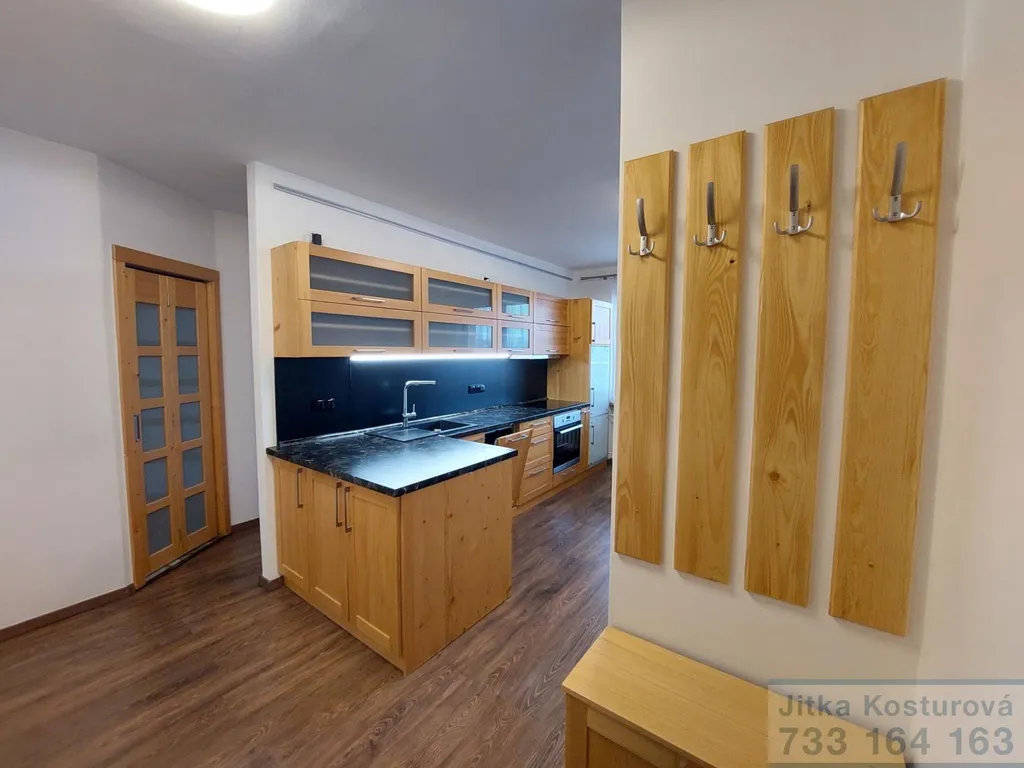 V exkluzivním zastoupení majitele nabízíme na pronájem byt o velikosti 2+kk výměře 42 m2. Byt se nachází na adrese Jesenická 6 v Krnově ve 4. nadzemním podlaží. Velmi stylová rekonstrukce bytu proběhla před 10 lety. V bytě je komora s policovým systémem, velký pokoj s kuchyňskou linkou, samostatná ložnice, koupelna s rohovou vanou, umyvadlem, WC a pračkou a podlahovým vytápěním. Kuchyňská linka z masivu je vybavena spotřebiči - myčka nádobí, elektrická trouba, sklokeramická varná deska, lednice. Vybavení bytu jídelní stůl, 4 židle, pračka, panel na uchycení televize, botník, věšáková stěna. K bytu náleží sklep, v domě je sušárna, kolárna. Náklady na bydlení jsou do Čtyřtisíc Kč pro 2 osoby včetně internetu. Nájemné Jedenácttisícpětset Kč, vratná kauce 2 nájmy, provize 1 nájem.