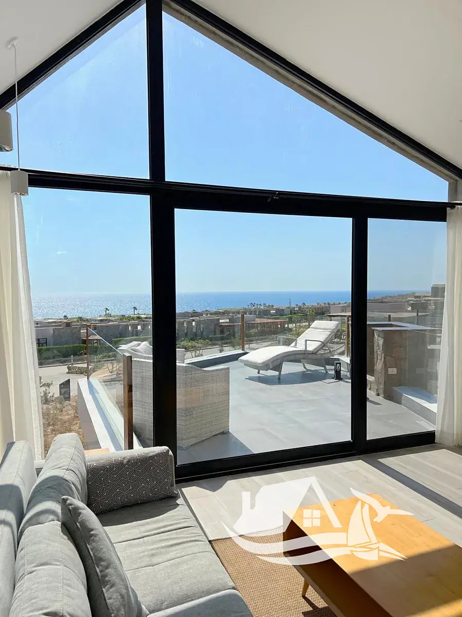 Vila je kompletně dokončená a připravena k nastěhovaní s vynikajícím designem, kde jsou pevné stěny nahrazeny velkými skleněnými plochami, aby se interiérový design stal fascinujícím vyvýšeným výhledem na moře, sluneční svit, západ slunce, hory a mraky, vnitřní kusy jsou zachovány neutrální, aby neubíralo na klidu výhledu, dřevěné stěny, podlaha a stropy dodávají chatě více tepla, elegance a prostoru.