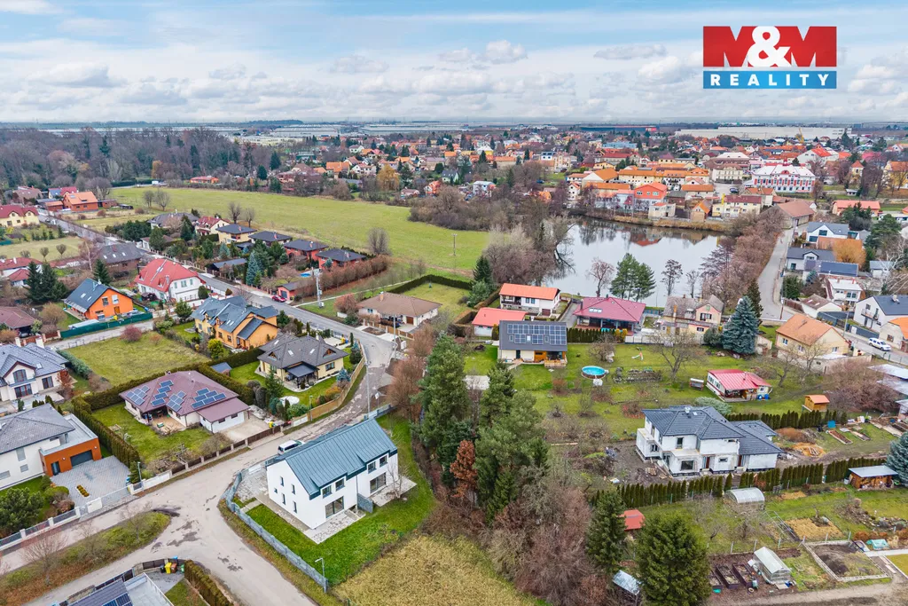 Nemovitost je postavena z kvalitních cihlových materiálů a vybavena moderními technologiemi jako je klimatizace, termostat, venkovní rolety a tepelné čerpadlo. Součástí nabídky je také zahrada o velikosti 621 m² a parkovací stání přímo na pozemku.
