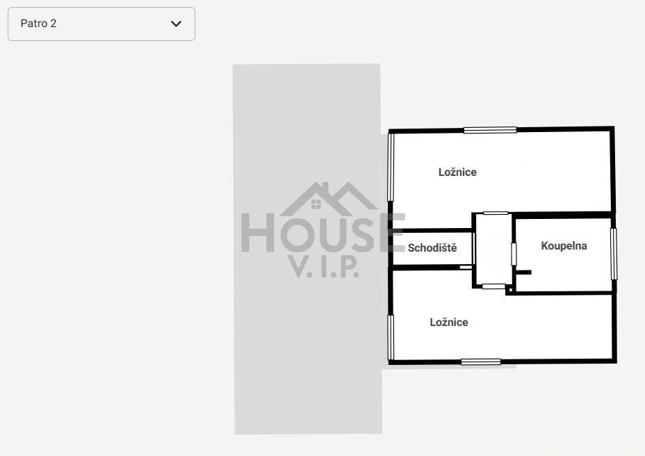 Ve druhém nadzemním podlaží jsou umístěny dva samostatné neprůchozí pokoje a koupelna s vanou a WC. Dům je možné po dohodě prodat včetně vybavení.