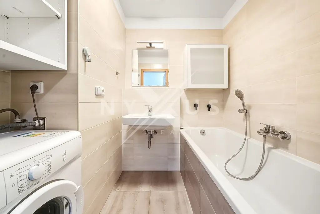 Tento byt se bude pronajímat jako částečně vybavený - k dispozici vestavěná skříň v předsíni, skříňky v koupelně, pračka, menší sedačka a jídelní stůl.