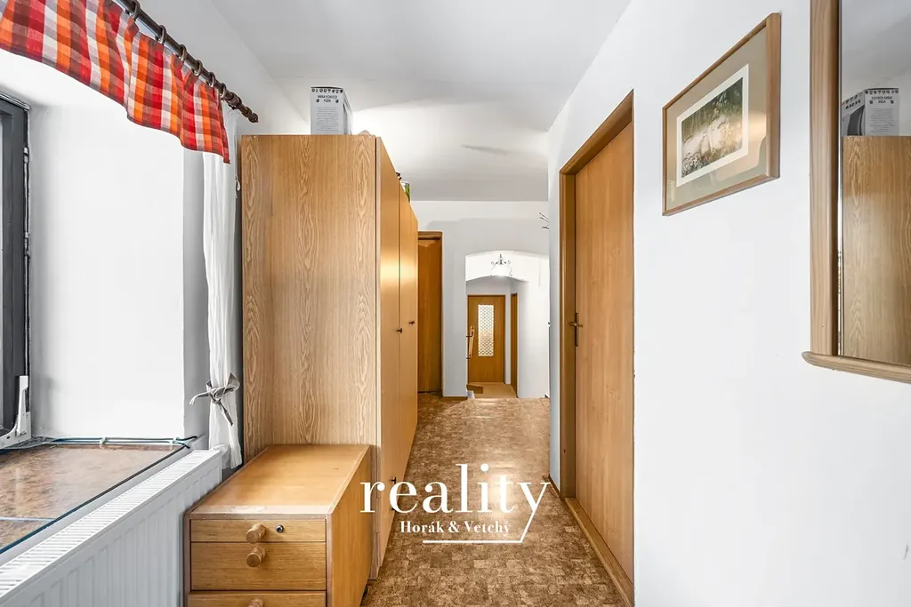 Za zmínku stojí i prostorná půda s potenciálem dostavby dalších pokojů/bytu s možností protažení těchto nových obytných prostor až nad průjezd, kde je již i zateplená podlaha.