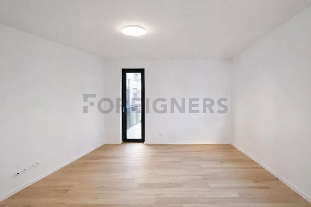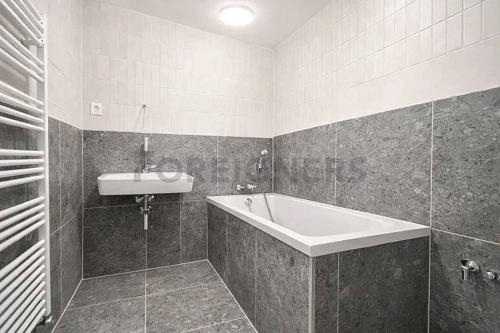 Pronájem moderního a velkého bytu 2+kk s balkonem, sklepem a parkovacím místem v podzemní garáži – Pekárenský dvůr, Brno – Bratislavská