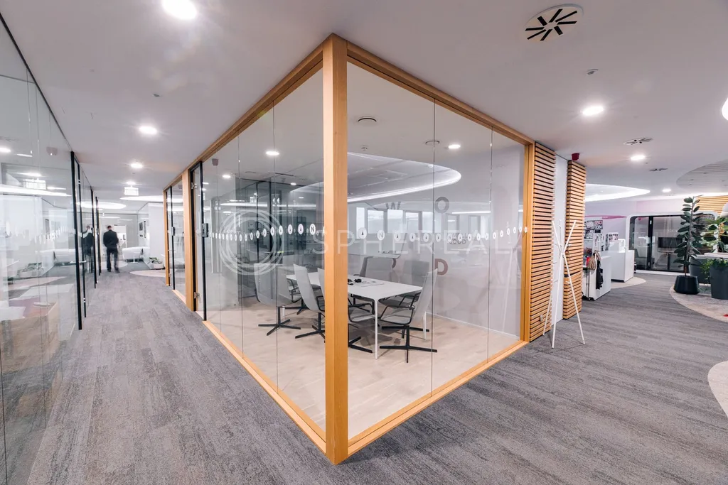 Kanceláře o ploše přibližně 1720 m² se nachází v 5. NP budovy C a jsou vybudovány ve vysokém standardu jako open space se zasedacími místnostmi, kancelářemi a kuchyňkami. Je možné oddělit plochu od cca 450 m² a více, přičemž na výběr je z více možností v několika podlažích.