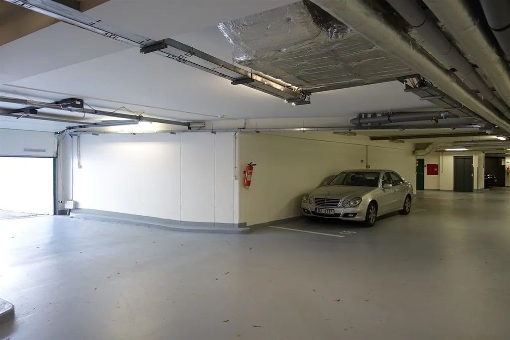 Na terase je položena venkovní dlažba s odtokovým kanálkem, ideální pro posezení či relaxaci. K bytu náleží garážové stání v suterénu domu s vjezdem na dálkové ovládání. Obyvatelům je dále k dispozici kočárkárna a kolárna.