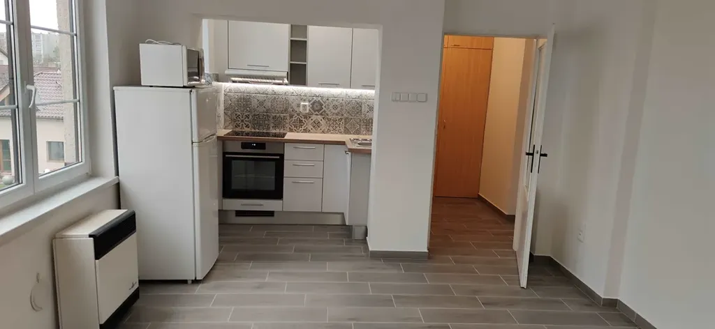 Nabízíme k pronájmu světlý, tichý byt 1+kk ve 2. patře 2. patrového řadového domu s předzahrádkou, 30 m2. Byt je nezařízený nábytkem.